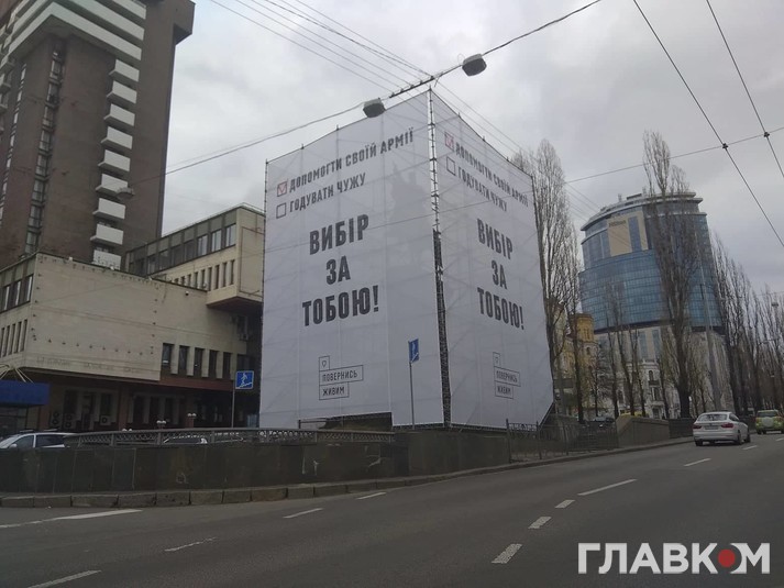«Допомогти своїй армії» чи «Годувати чужу» - «Вибір за тобою!» - написано на банері, автором якого є благодійний фонд допомоги українській армії «Повернись живим».