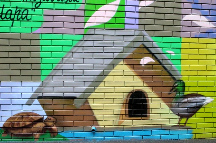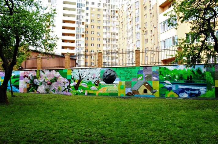 Ініціатором створення муралу стала місцева громада. Мешканців у цьому підтримали зеленбудівці Солом'янського району, і спільними зусиллями вдалося реалізувати цей масштабний проєкт.