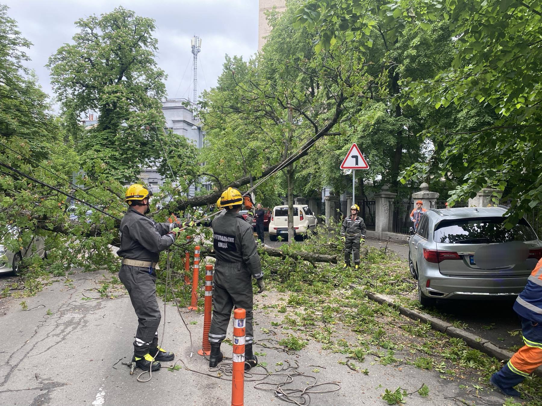 Також сьогоді на вулиці Олени Теліги на дорогу впало дерево, що значно ускладнило рух транспорту, було зафіксовано обрив контактної лінії тролейбусів, що призвело до затримки руху низки тролейбусів.
