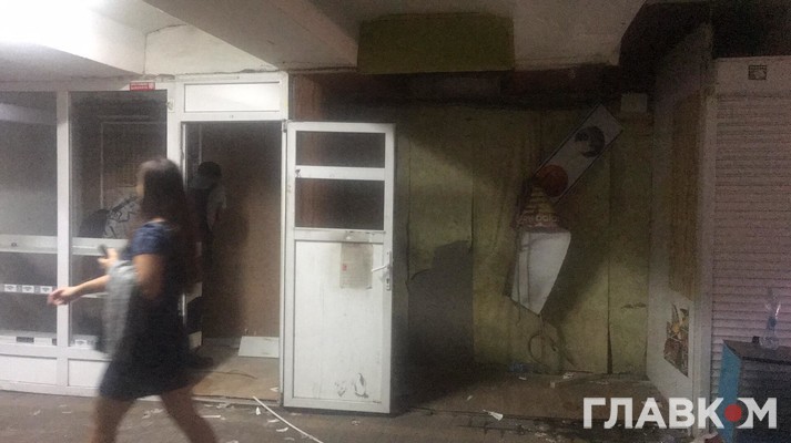 У переході біля метро «Позняки» зносять МАФи (фото)