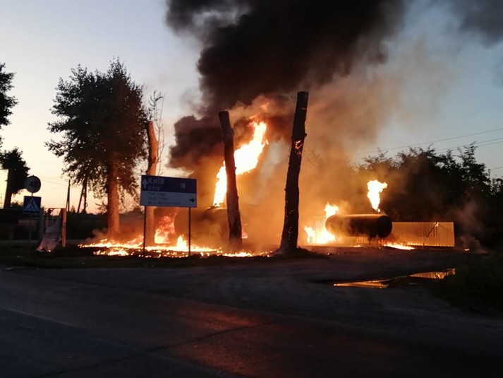 Вогнем знищено дві заправні колонки, будівлю охорони, ємності з дизпаливом