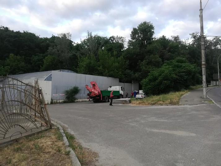 «Кран, який мав пересувати об'єкти для звільнення під’їзного шляху важкій техніці, пригнали о 5-й ранку, ми його вигнали о 5:30. Потім привезли робочих і маніпулятор, його після штовханини з «тітушками» ми вигнали близько 7:00», - написав він.