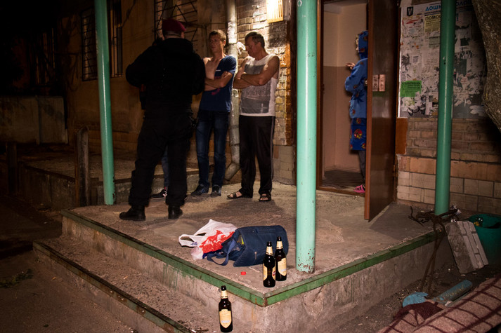 За словами поліцейських, компанія молодих людей сиділа під парадним і розпивала спиртні напої. Серед них і вагітна жінка.