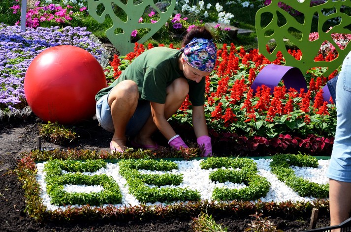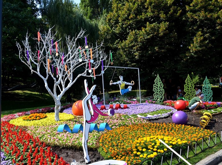 Усього на 10 інсталяціях, створених районними КП УЗН, буде представлено більш ніж 180 тис. квітів різних видів: колеуси, хлорофітум, бегонія, альтернатера, сеткреазія, хвойні чагарники та інші. Для оформлення інсталяцій ландшафтні дизайнери використали також багато елементів різноманітного спортивного інвентарю.