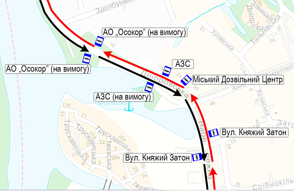 Зупинку «АЗС» автобусного маршруту № 87, який курсує Дніпровською набережною у напрямку вулиця Митрополита Андрея Шептицького, перенесено на 120 метрів назад та переведено на постійний режим роботи.