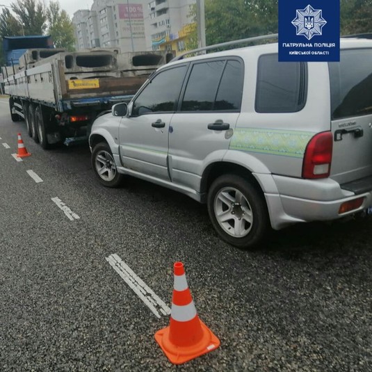 «У цей час водій Suzuki Grand Vitara не слідкував за дорожньою обстановкою та через неуважність допустив зіткнення і з легковою Geely, і з вантажівкою Volvo», - повідомили поліцейські.