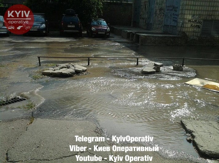 Станом на 16-ту годину, аварійної бригади «Київводоканалу» на місці події ще не було.
