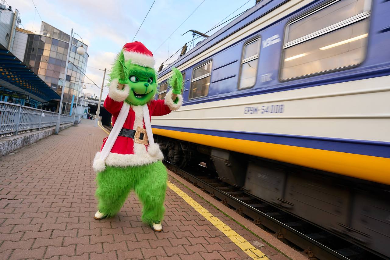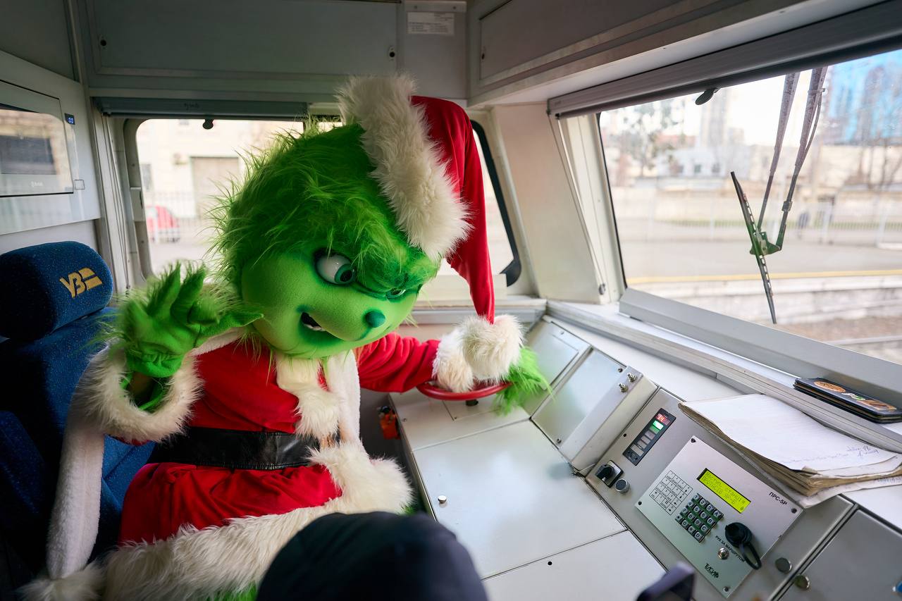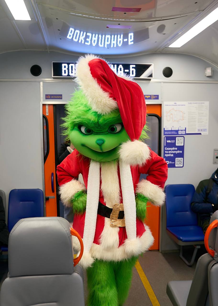 Грінч, відомий за історіями як затятий противник свята, цього разу обрав роль пасажира: він подорожував у вагонах, спілкувався з киянами та навіть зазирав до кабіни машиніста.