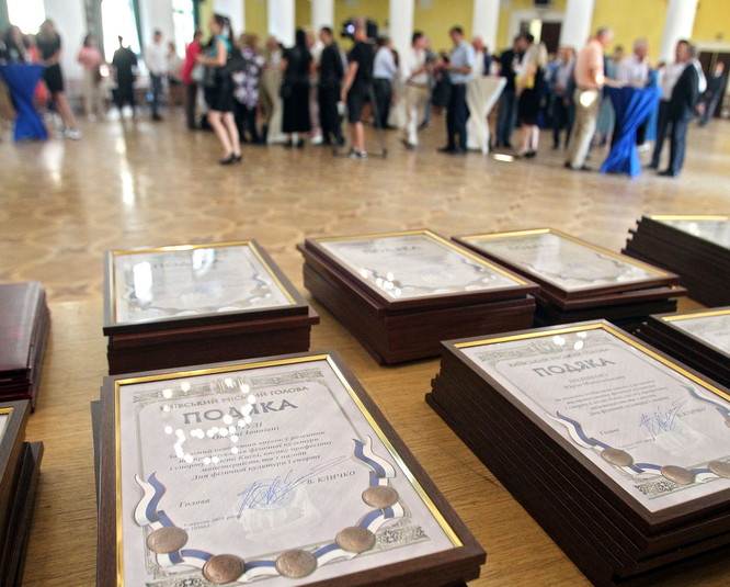 У Колонній залі Київської міської держадміністрації відбулось урочисте нагородження видатних київських спортсменів, присвячене Дню фізичної культури та спорту України.