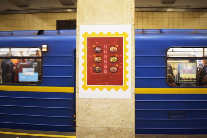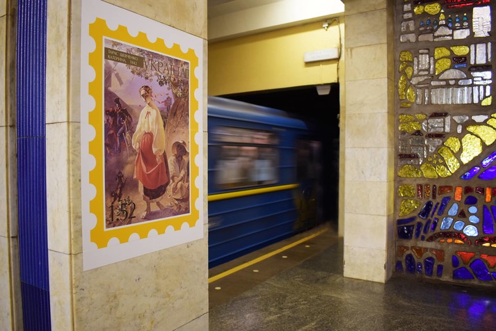 До 100-річчя першої української марки станцію метро «Поштова площа» прикрасили 50 її найкращих екземплярів. Про це повідомляє прес-служба КП «Київський метрополітен».