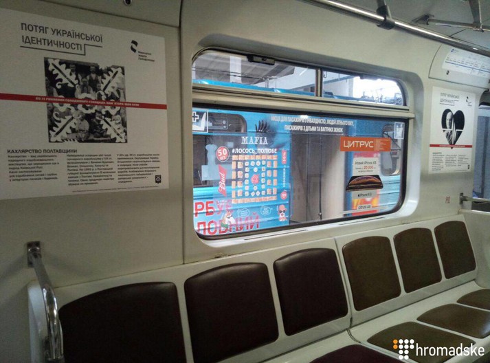 На стінах вагона розмістили серію інформаційних постерів, які розповідають про українську культуру, науку та суспільний розвиток.