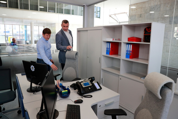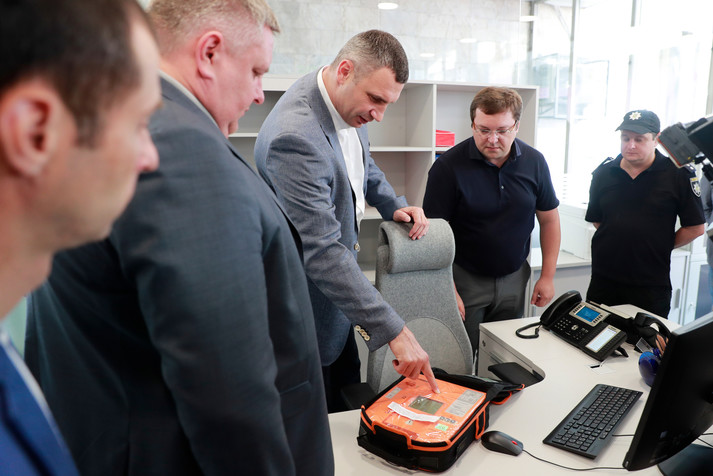 Мер Києва Віталій Кличко взяв участь у презентації першого відкритого офісу поліції метрополітену (Національної поліції). Скляний офіс відкрили на станції метро «Лук’янівська».