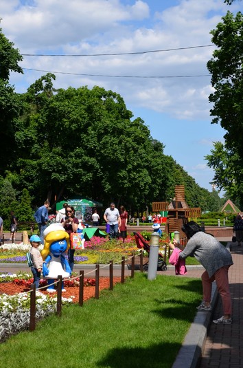 На даний момент на центральній алеї парку представлено три локації з героями улюблених мультиків. Діти в захваті від Губки Боба й Патріка, смурфиків майже їхнього зросту та Angry birds. І до кожного героя можна підійти поближче, роздивитися, сфотографуватися. Про це повідомляє комунальне обєднання «Київзеленбуд».