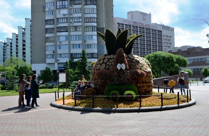 Для створення виставки працівники комунального підприємства по утриманню зелених насаджень Дніпровського району висадили 35 тисяч квітів. Каркаси більшості героїв створені із металевих конструкцій. Для оформлення окремих елементів використали мох, деревину, фанеру, рулонний газон.