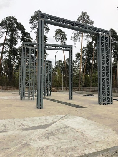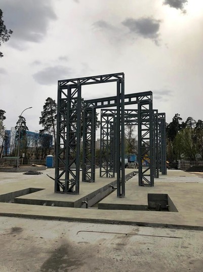 У парку Партизанської слави у Києві тривають ремонтні роботи. На вхідній групі встановлюють світловий пішохідний фонтан.