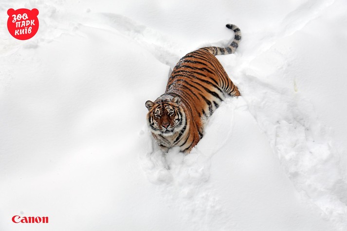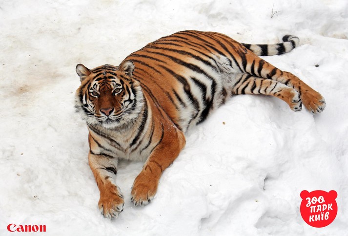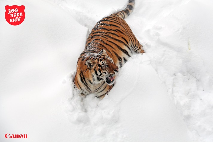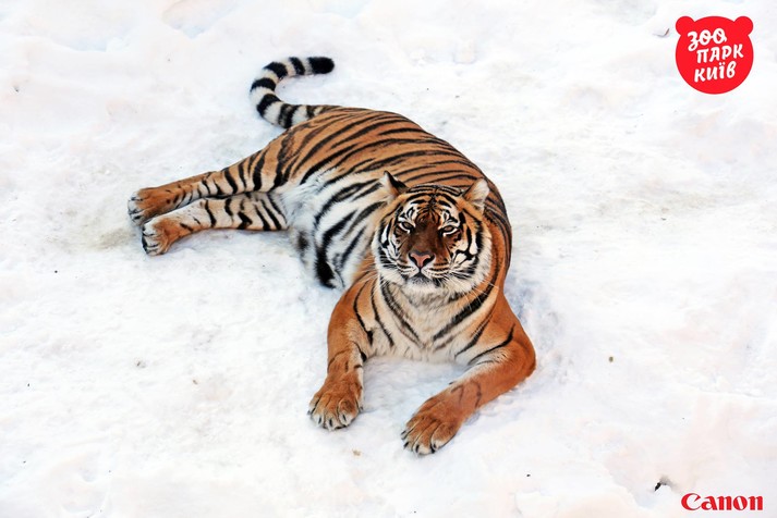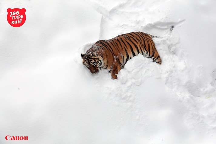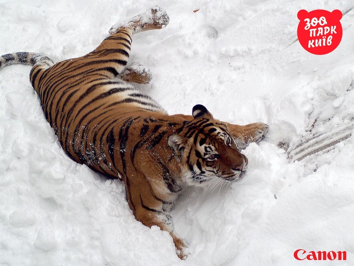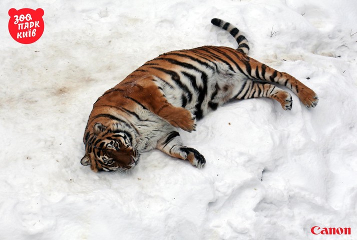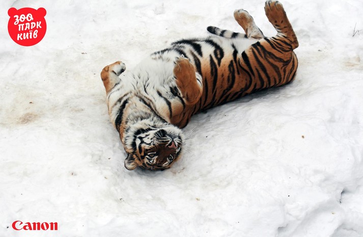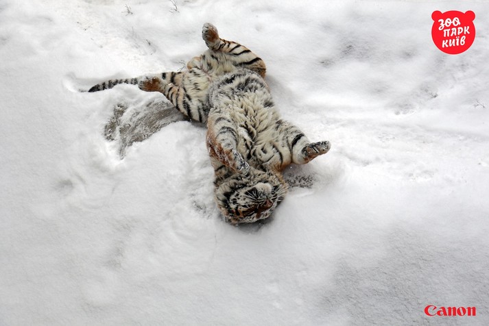 Зраділи йому і в Київському зоопарку. На офіційний сторінці столичного звіринця з'явилися фотографії, що ілюструють непідробну радість дорослого амурського тигра, який качається у снігу.