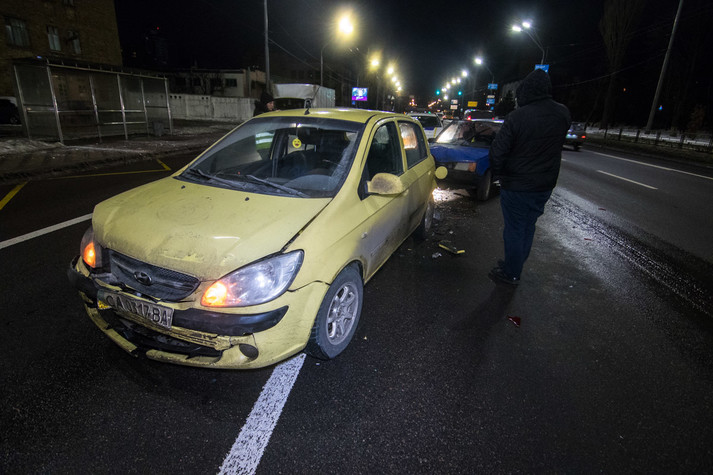 У суботу, 19 січня, в Шевченківському районі Києва сталося потрійне ДТП. Спочатку зіткнулися Citroen і Hyundai, після чого «корейця» наздогнала «Таврія».