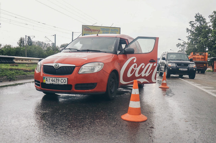 За словами водія Skoda Roomster, він зупинився перед пішохідним переходом, пропустив пішохода і почав рух. Уже в момент перетину водієм переходу на проїжджу частину вибігла жінка, прикриваючись парасолькою, не бачачи автомобіля, що рухається. Водій вдарив по гальмах і спробував піти від зіткнення. Маневр здійснити не вдалося, і він зачепив жінку правим крилом.