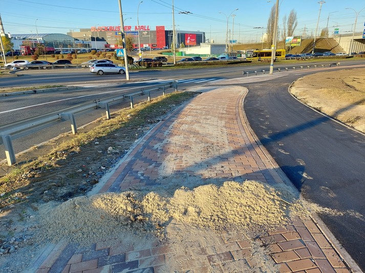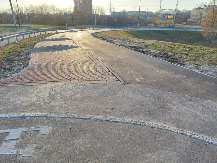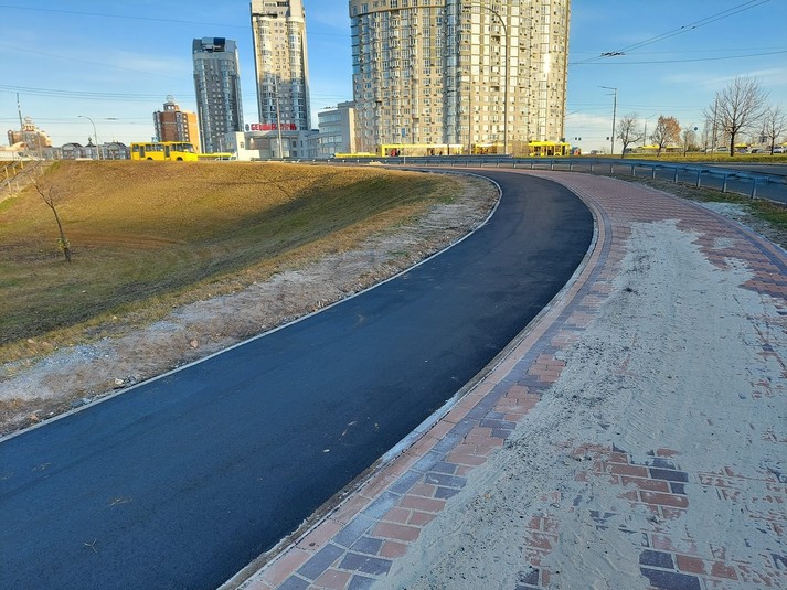 На транспортній розв'язці проспекту Степана Бандери та проспекту Героїв Сталінграда в Києві побудували двосторонню велосипедну доріжку та оновили покриття пішохідного тротуару. Про це повідомляється на Facebook-сторінці спільноти «Київ – велосипедне місто».