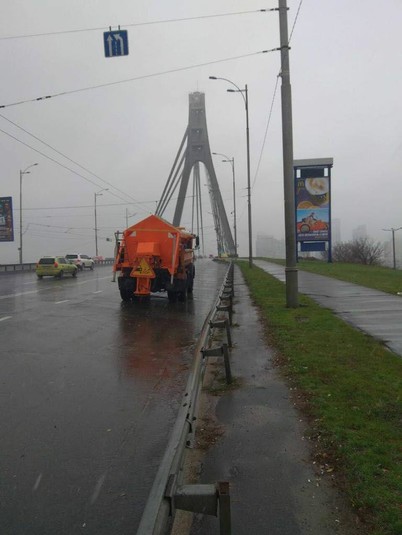 «Фахівці-дорожники працюють в цілодобовому режимі, відслідковують зміни погодних умов за допомогою метеорадара і метеостанцій, встановлених на в‘їздах у столицю, - відзначив Густєлєв. - Зараз на київських дорогах працює 65 одиниць спеціальної техніки, яка обробляє дорожнє покриття соляною сумішшю», - зазначив керівник «Київавтодору».