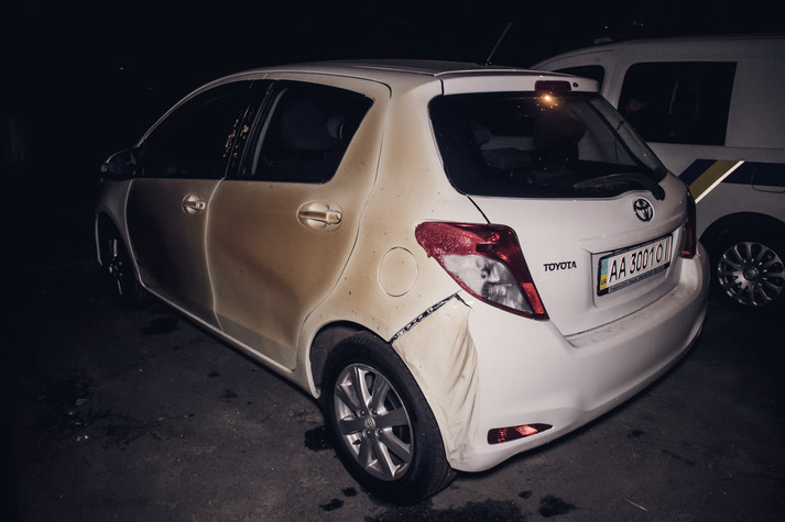 Також постраждали два автомобілі, які були припарковані поруч з «німцем». У Toyota Yaris обгорів лівий бік і поплавило задню ліву фару. Власник Toyota встиг вчасно відігнати автомобіль подалі від вогню і мінімізувати втрати. У Audi A6 вогонь пошкодив передню ліву фару і передній бампер.
