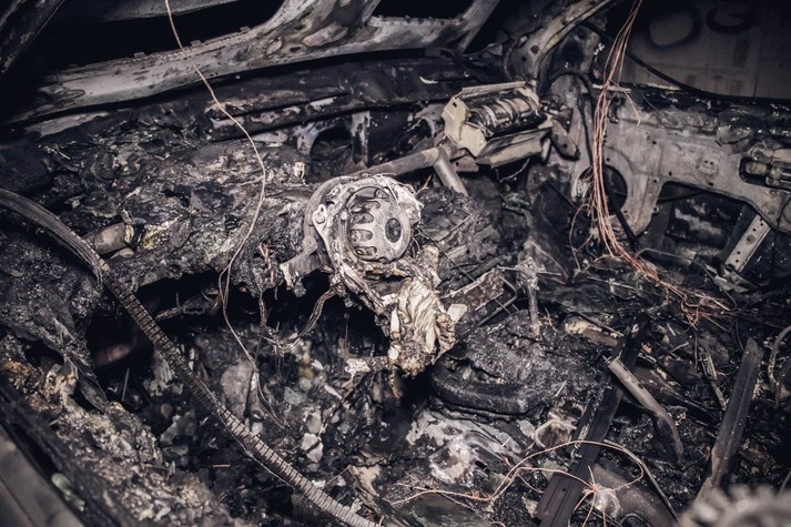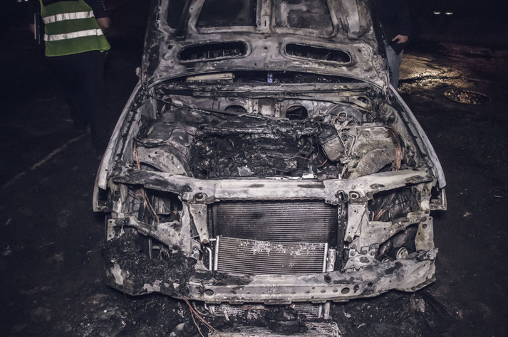 У столиці «коктейлем Молотова» підпалили автівку: машина вигоріла дотла