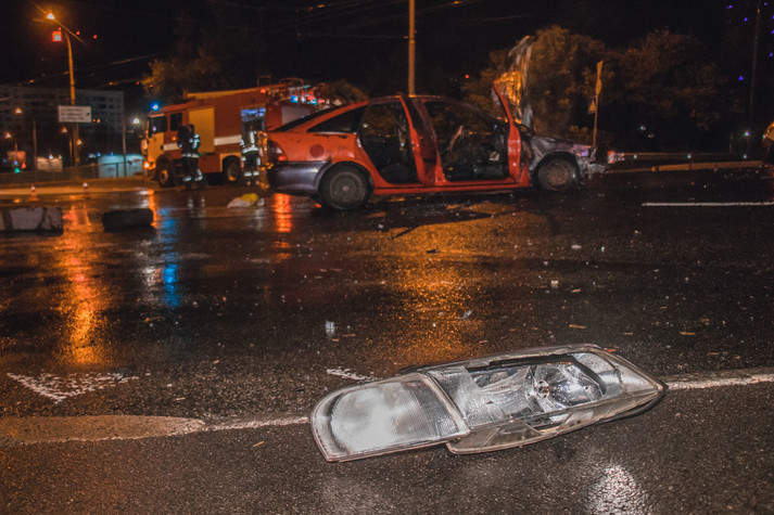 За попередньою інформацією, патрульні їхали по Повітрофлотському проспекту в бік Севастопольської площі. На з'їзді з моста, який йде через проспект Перемоги, з вулиці Борщагівській виїжджав Opel. У цей момент сталося зіткнення.