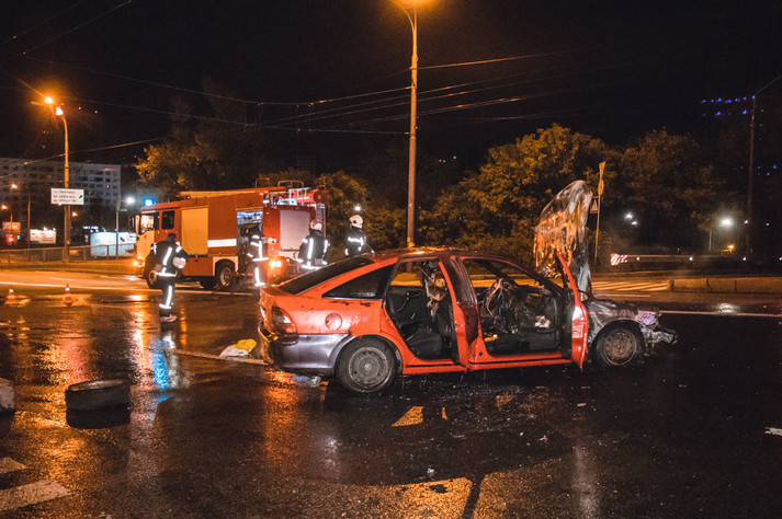 Що саме сталося - невідомо. Водій Vectra сказав, що відволікся на телефон. Відразу ж після зіткнення Opel загорівся. На щастя, обійшлося без постраждалих. На місці працюють співробітники патрульної поліції, а також виїжджали пожежні і чергували медики. Через ДТП рух по Повітрофлотському проспекту за мостом в бік Севастопольської площі було перекрито.