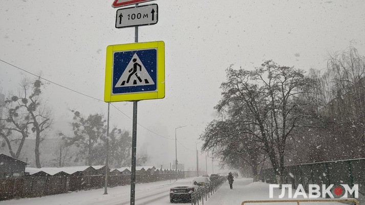 У Києві раптово почався снігопад і почало засипати все навколо.