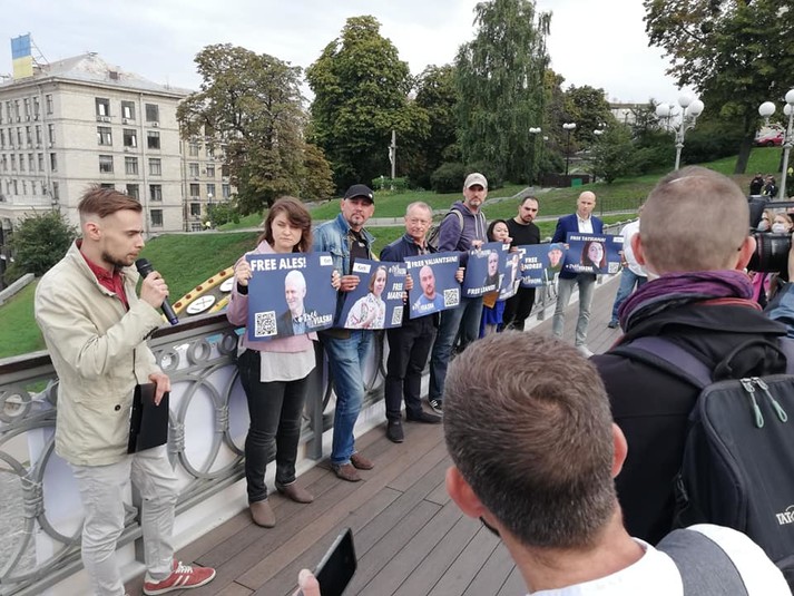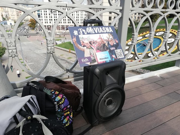 У Києві відбулася акція солідарності з ув’язненими правозахисниками Білорусі під назвою FreeViasna. Захід провели українські правозахисники та активісти на пішохідному мосту над Алеєю Героїв Небесної Сотні, інформує «Центр Громадянських свобод» на сторінці у Facebook.