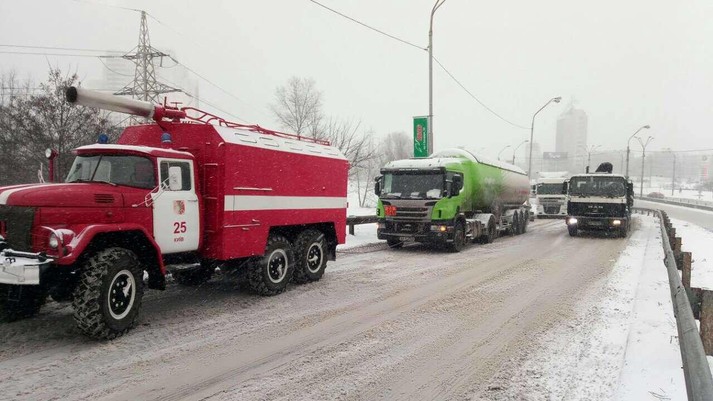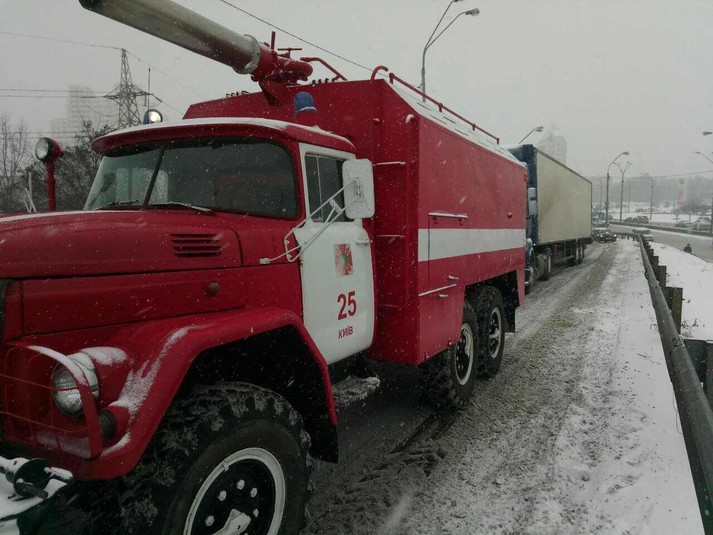 Аби не допустити ускладнення руху на автошляхах столиці, рятувальники чергують на проблемних ділянках доріг (на спусках, підйомах) а саме: на вул. Олени Теліги та на вул. Академіка Заболотного.