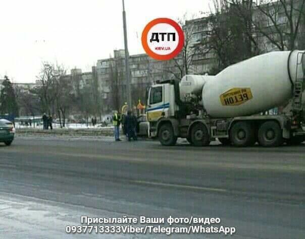 У Києві сталася дорожньо-транспортна пригода за участю бетоновоза. Про це інформує паблік dtp.kiev.ua.