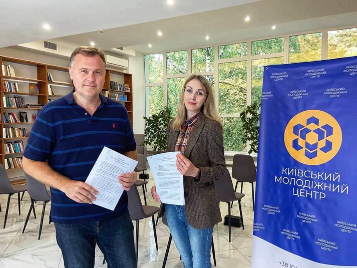 Директор Київського молодіжного центру Андрій Омельченко та завідувачка бібліотеки Наталія Жаборовська презентували громадськості простір і закріпили співробітництво відповідним меморандумом про співпрацю.