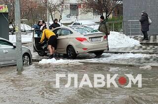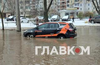 На опублікованих кадрах видно, що кран лежить на просто проїжджій частині поперек вулиці. Водії рятують свої авто із водяного полону. Пошкоджено як мінімум одну автівку, на яку впав кран.