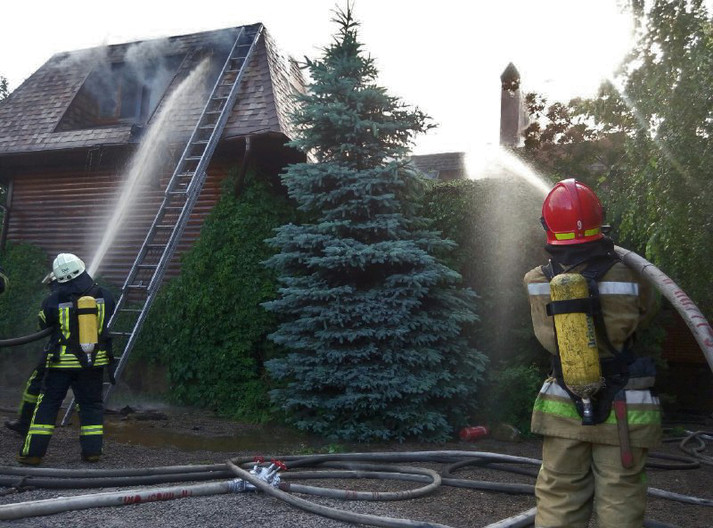 «На місце події негайно було відправлено найближчі пожежно-рятувальні підрозділи. По прибуттю на місце виклику було встановлено, що сталося загоряння на 1-му поверсі 2-поверхового житлового будинку. По дерев’яних конструкціях вогонь швидко розповсюджувався на 2-й поверх та дах будинку», - інформує прес-служба столичних рятувальників.