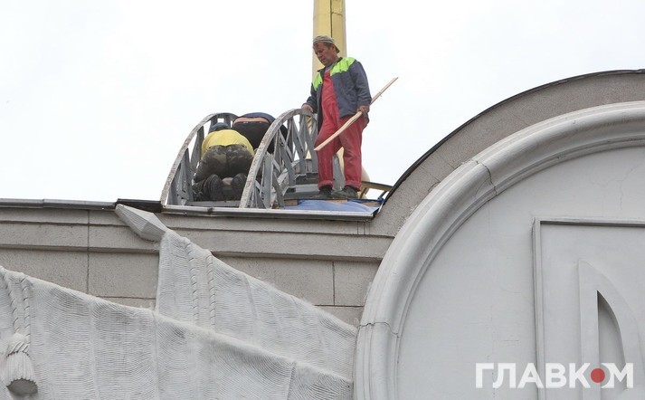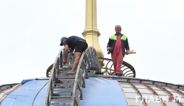 Наразі ремонтна бригада почала знімати скло на куполі і затягувати плівкою.