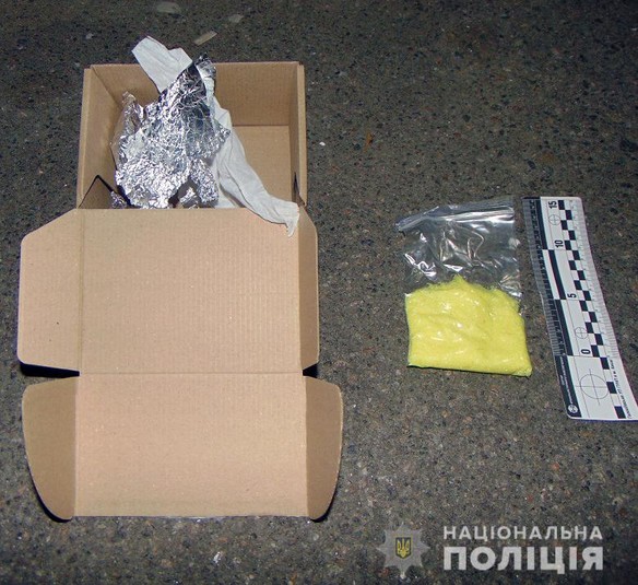 «На вимогу показати вміст пакунка чоловік почав нервувати, але після роз'яснення норм законодавства надав згоду та відкрив посилку. Там ми виявили згорток із фольги, в якому містилася жовта кристалічна речовина, схожа на прекурсори. Для документування події викликали слідчо-оперативну групу районного управління», - розповів начальник сектора превенції Голосіївського управління поліції Андрій Вернігор.