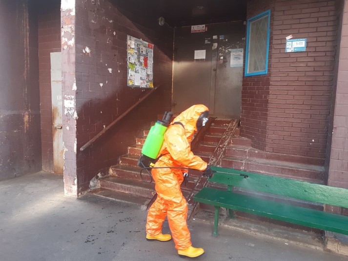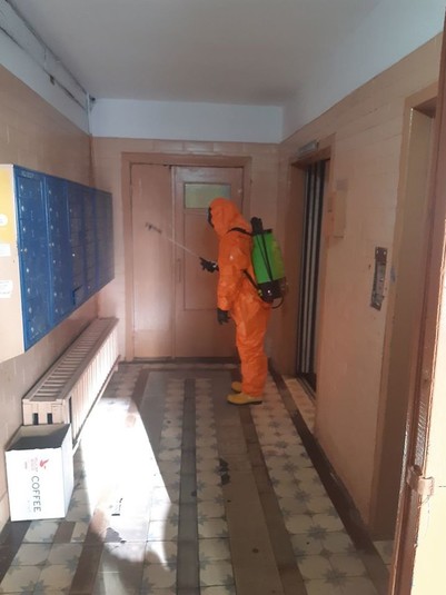 У рамках боротьби з поширенням коронавірусної інфекції столичні рятувальники проводять дезінфекцію у житлових будинках, де перебували люди з підозрою на вірус Covid-19.