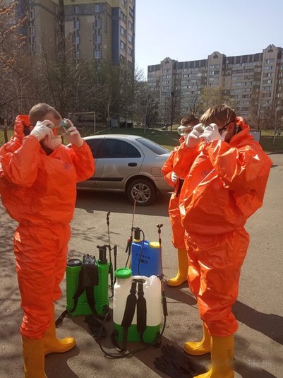 Протягом двох днів рятувальники, згідно з наданим переліком від штабу з ліквідації наслідків надзвичайної ситуації Київської міської державної адміністрації, в спеціальних захисних костюмах продезінфікували загалом 14 об'єктів у Голосіївському, Дарницькому, Деснянському, Дніпровському, Печерському та Солом'янському районах столиці загальною площею близько 2500 кв. м. Про це повідомляє пресслужба Головного управління ДСНС у Києві.