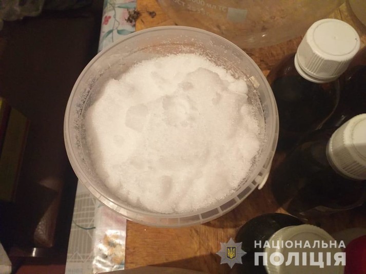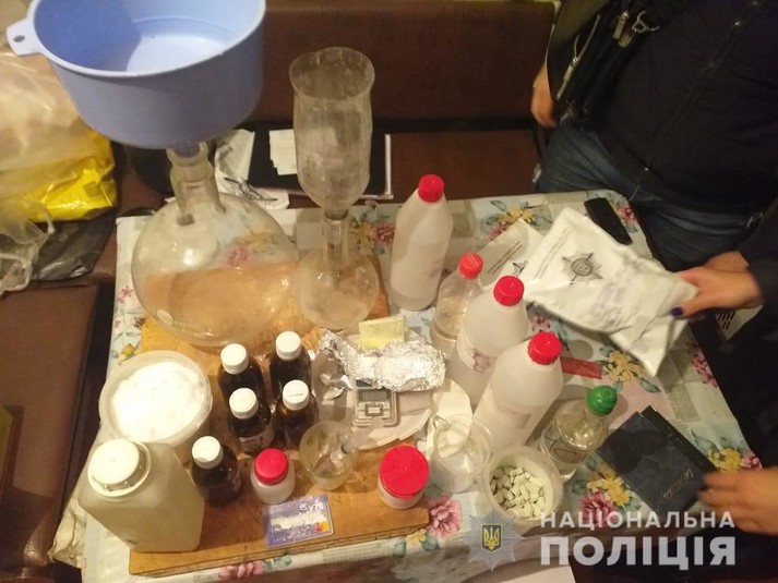 Так, під час проведення невідкладного обшуку у приватному будинку працівники поліції виявили та вилучили кілограм марихуани, різноманітне хімічне обладнання, різні інгредієнти, необхідні для виготовлення амфетаміну, та 150 г готового «продукту».