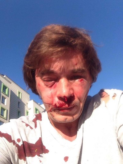 Судячи з фото, активіст отримав численні гематоми обличчя