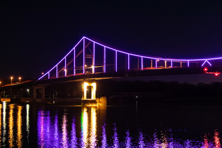 У вівторок пішохідний міст у Києві засяяв фіолетовим кольором (фото, відео)