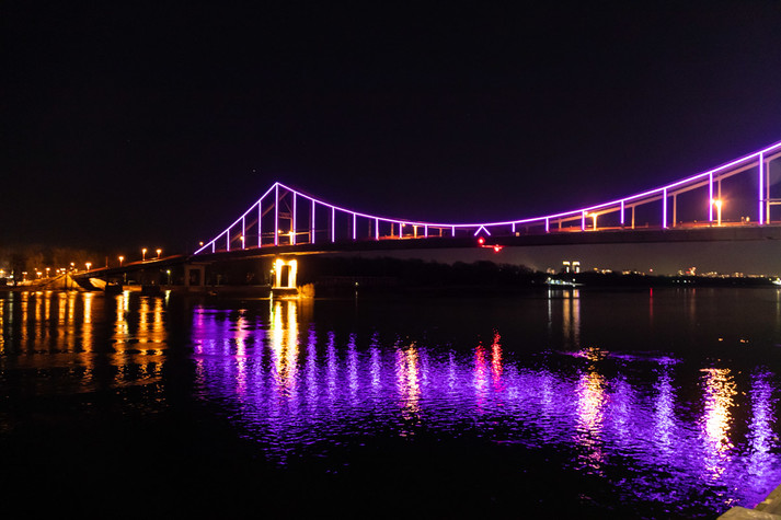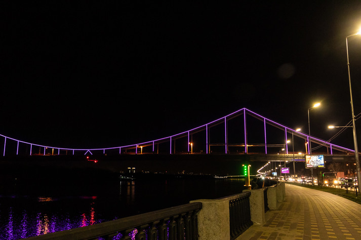 Київська влада також вирішили долучитися до загальної тенденції. Пішохідний міст завжди підсвічується яскравою ілюмінацією. Найчастіше міст прикрашають жовто-блакитні кольори, як символ патріотичності. Однак у Всесвітній день боротьби з епілепсією міст засяяв яскравим фіолетовим світлом.
