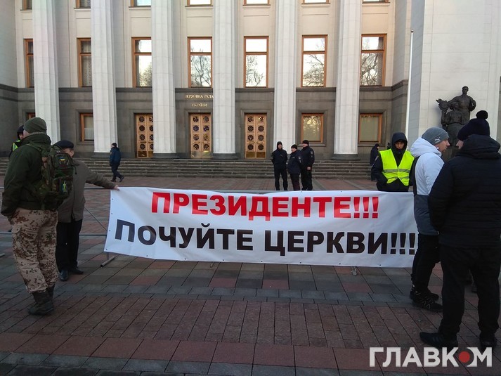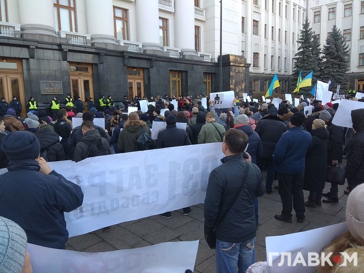 Так, біля стін парламенту зібралися кілька десятків протестувальників, які виступають проти прийняття закону № 0931, який нардепи планують голосувати 17 грудня. Спочатку люди з плакатами стояли на площі біля парламенту, а згодом перемістилися на Банкову, до Офісу президента.