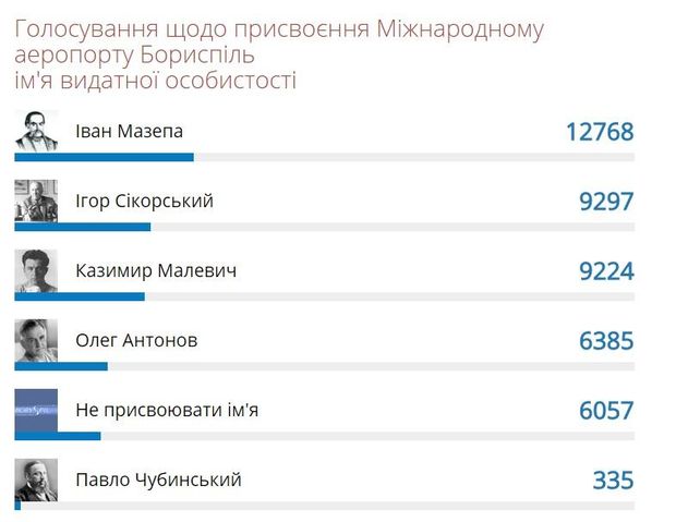 Трохи менше голосів набрали імена Ігоря Сікорського та Казимира Малевича – 9297 та 9224 голоси відповідно.