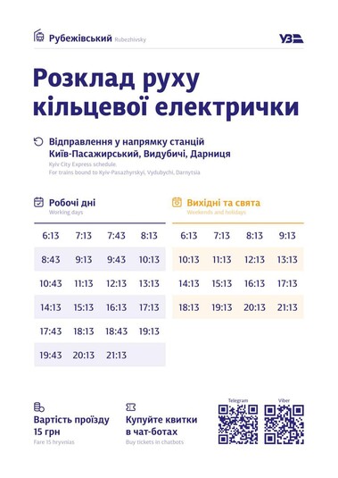 «Укрзалізниця» дослухалась до численних прохань пасажирів Київської кільцевої електрички та оновила постанційний розклад: з розподілом на будні та вихідні. Про це повідомили на сторінці товариства у Facebook.