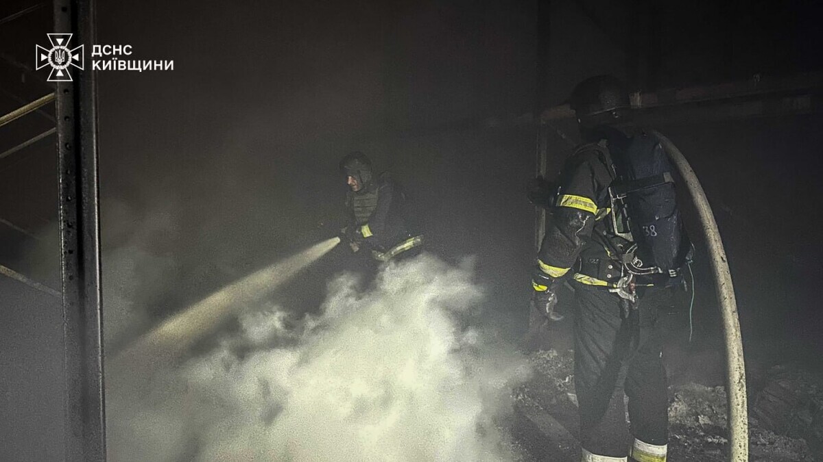У Київській області триває ліквідація пожежі в складському приміщенні, що сталася внаслідок ворожої атаки дронів. Про це повідомляє «Главком» із посиланням на ДСНС.