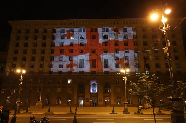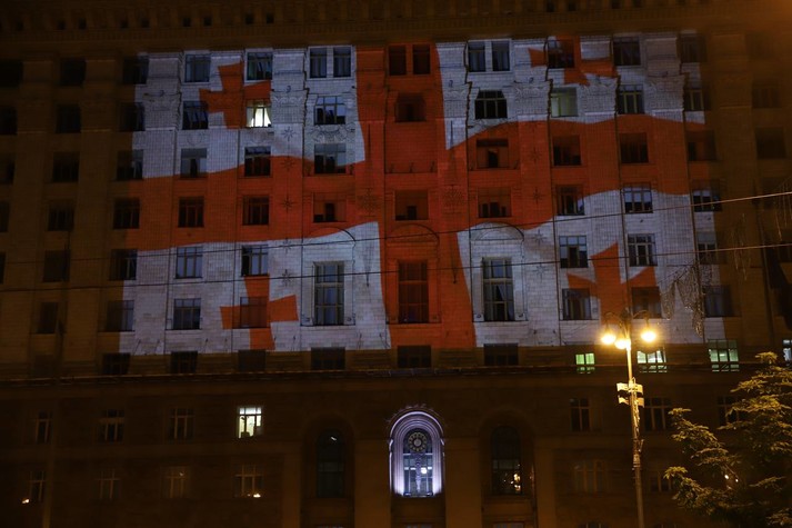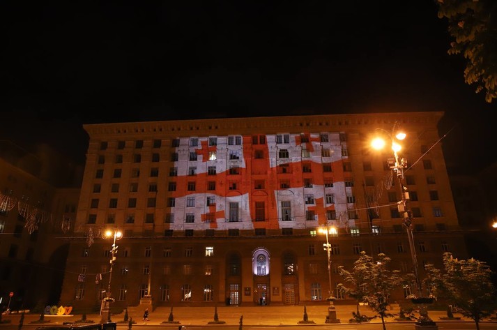 У ніч на середу, 26 травня, з 00:00 до 03:00 адміністративна будівля Київської міської державної адміністрації на Хрещатику, 36 була підсвічена кольорами Державного прапора Грузії.