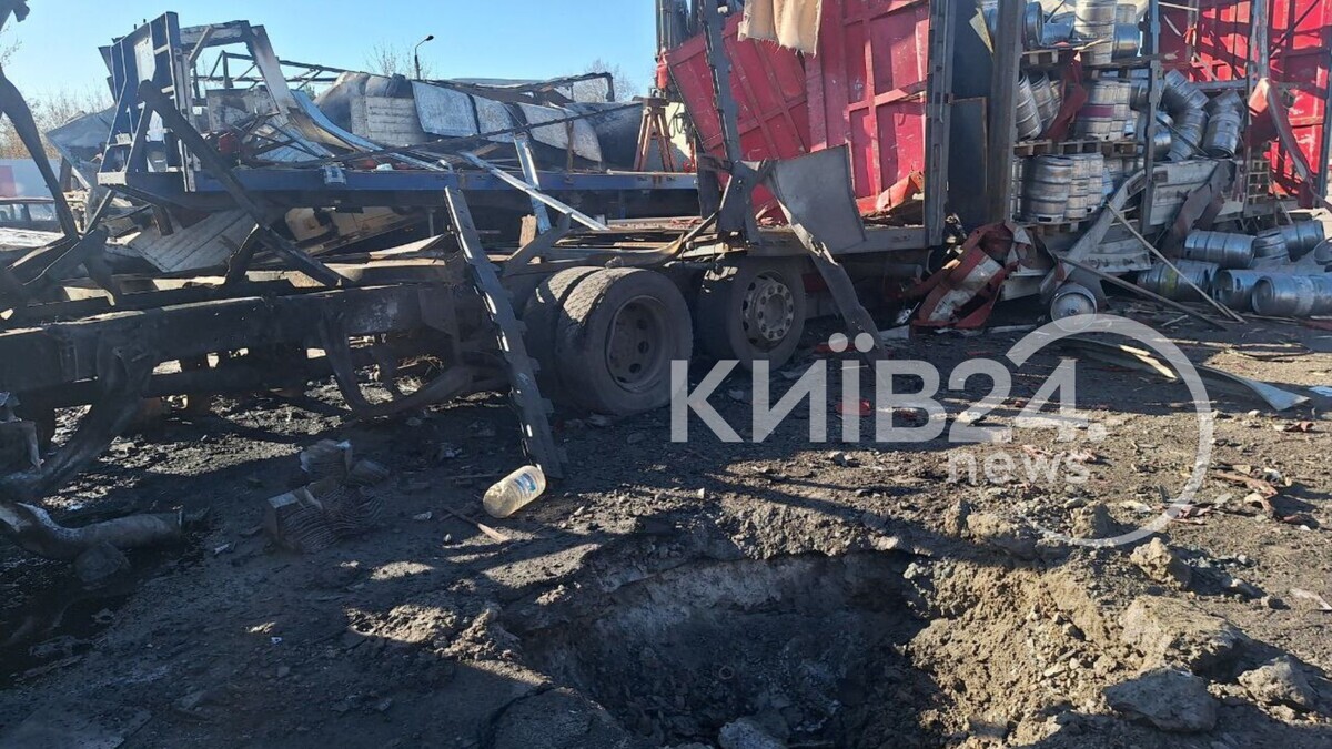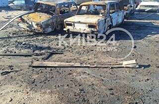 Рятувальники зазначають, що через атаку на парковці спалахнули два вантажні та два легкові авто, ще 19 транспортних засобів пошкоджено.
