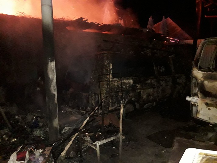 По прибуттю на місце пожежі рятувальниками було проведено розвідку та встановлено, що горить нежитловий будинок розміром 9х15 м та два автомобілі.